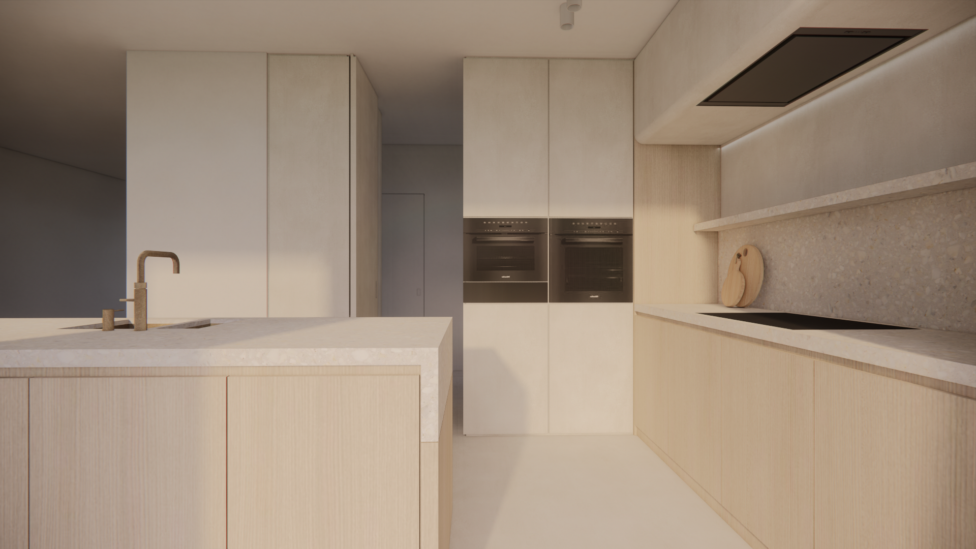 In dit keukenontwerp draait alles om subtiliteit en verfijning. Elk detail, hoe klein ook, draagt bij aan een harmonieus geheel, waarin de schoonheid van het ontwerp perfect samengaat met praktische oplossingen.
