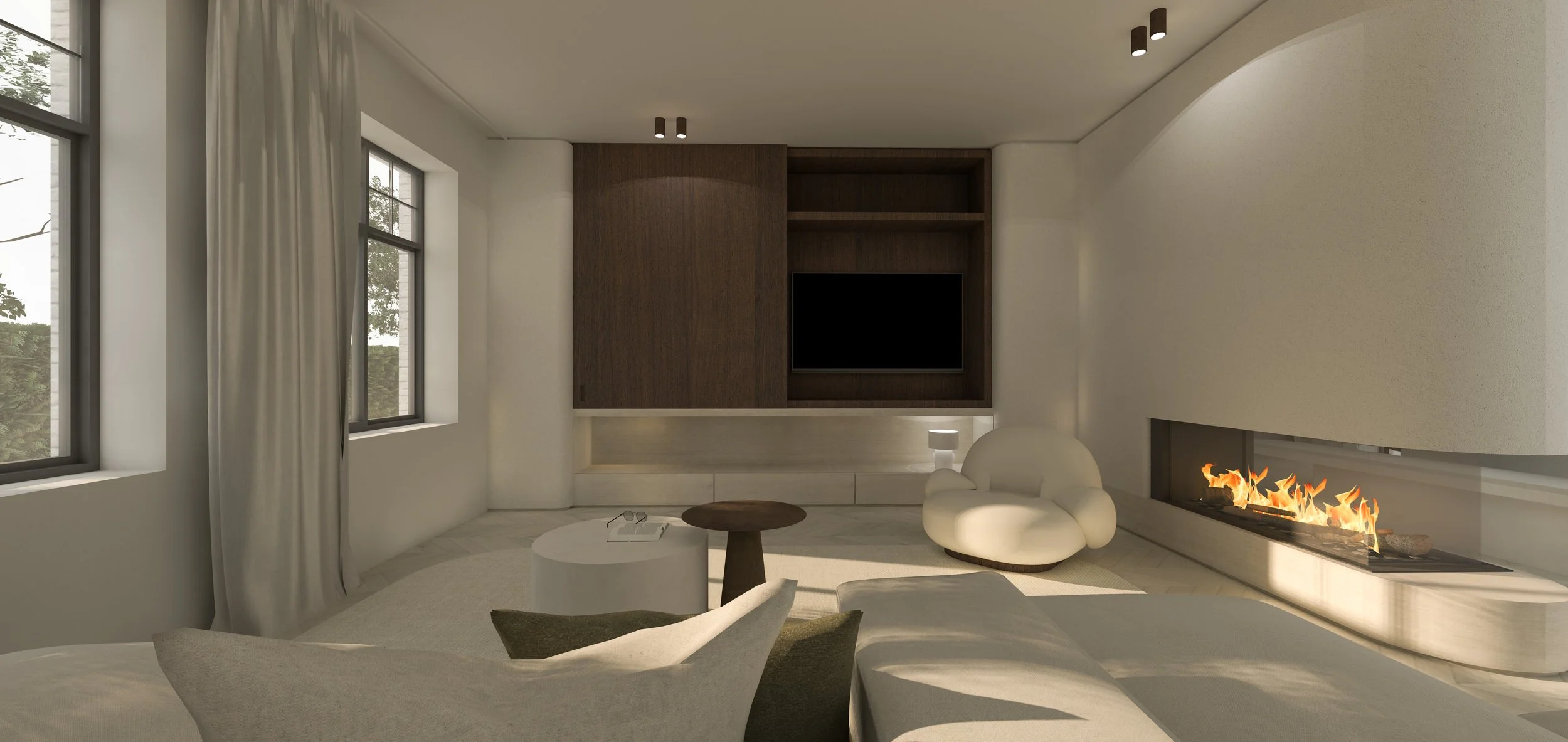 Ontdek hoe een op maat gemaakt tv-meubel en een verfijnd haardmeubel samenkomen in een ruimte die zowel rust als sfeer uitstraalt.